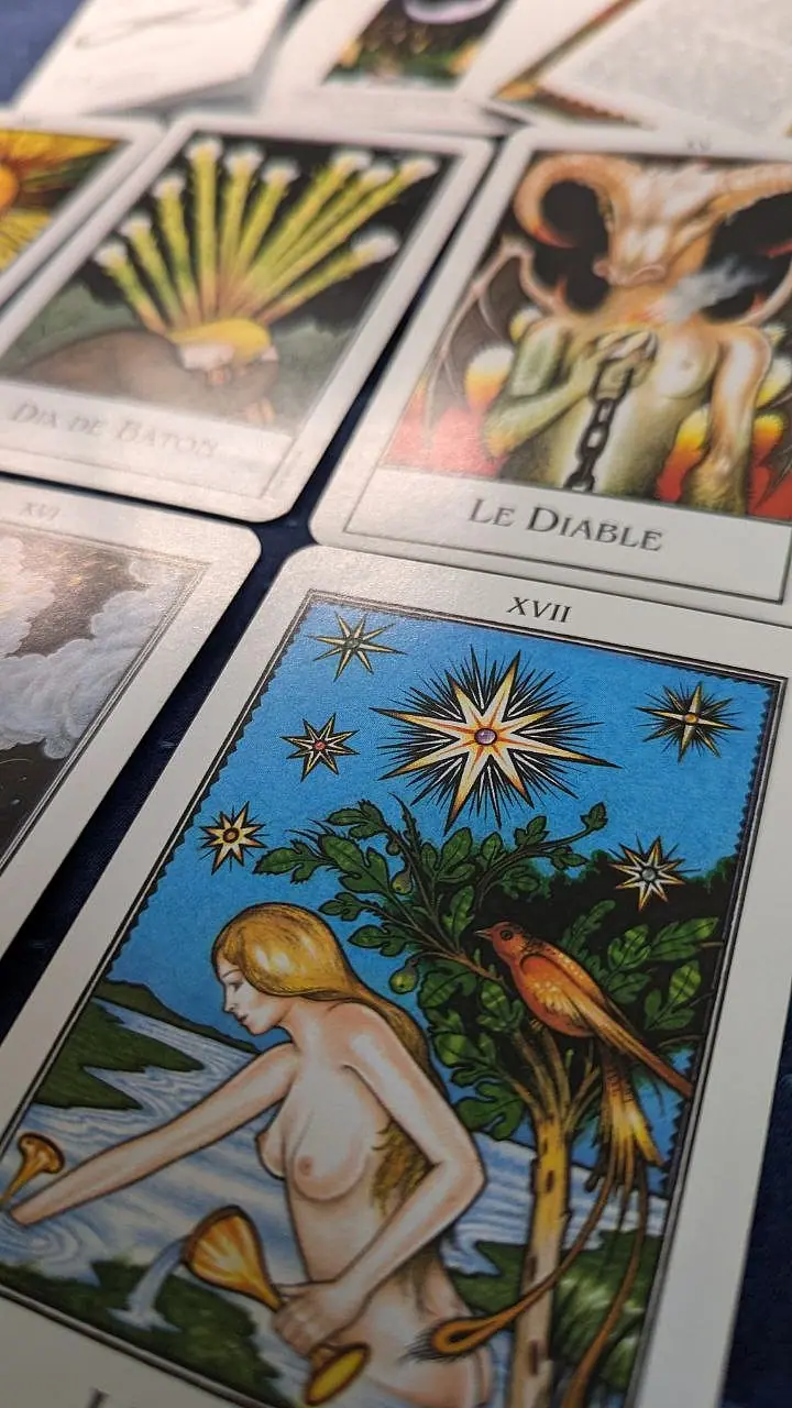 Tarot Rider-Waite, lecture, divination, interprétation, symbolisme, initiation, spiritualité, cartomancie, oracle, méditation, voyance, occultisme, connexion spirituelle, guidance, archétypes, révélation, atelier.
